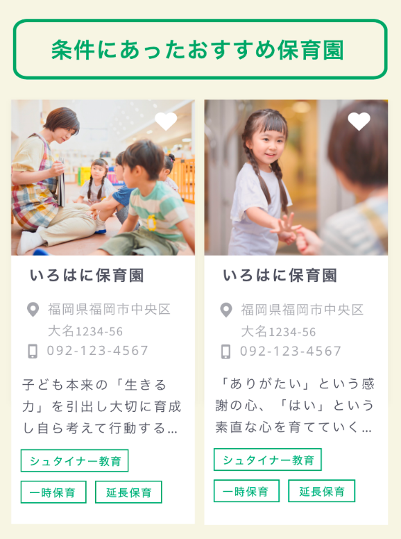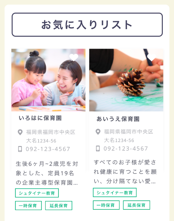 この保育園気になる…そうおもったら♡マークをポチっと!お気に入りリストに入れておけば後からゆっくり見返せます。