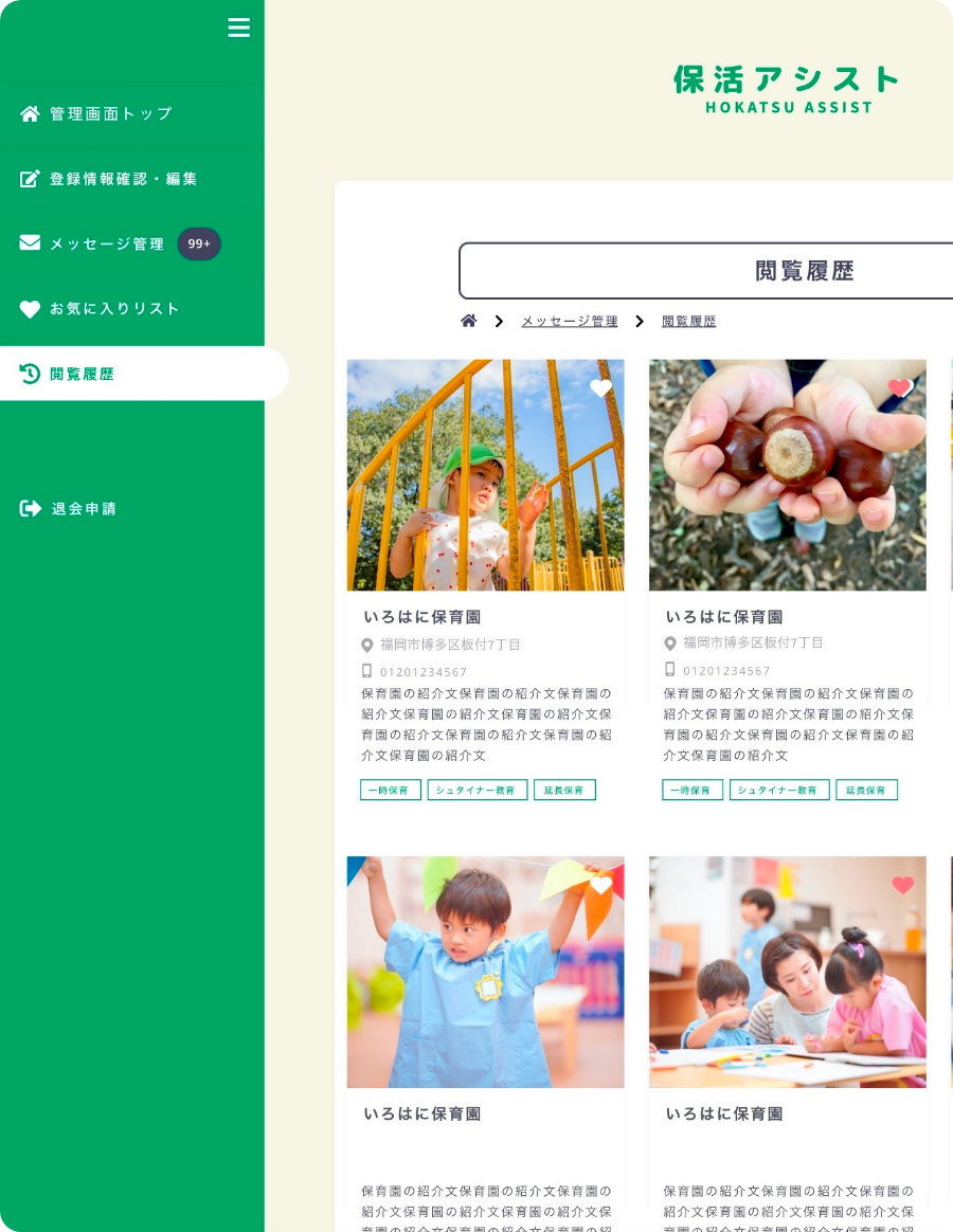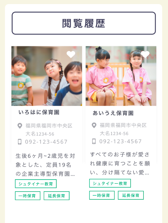 お気に入り登録し忘れた…!という方も、閲覧履歴を確認することができるのでこの間見ていた気になる保育園も後からお気に入りリストに入れることが可能です。