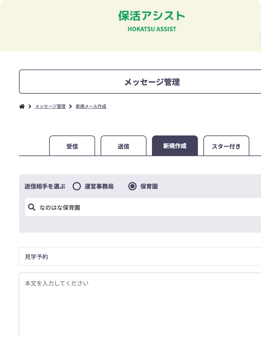 いざ園見学予約!開園時間終わっているから予約の電話は持ち越し…なんてこともよくあります。メッセージ機能を使えば24時間自分のタイミングで保育園に問い合わせが可能です!